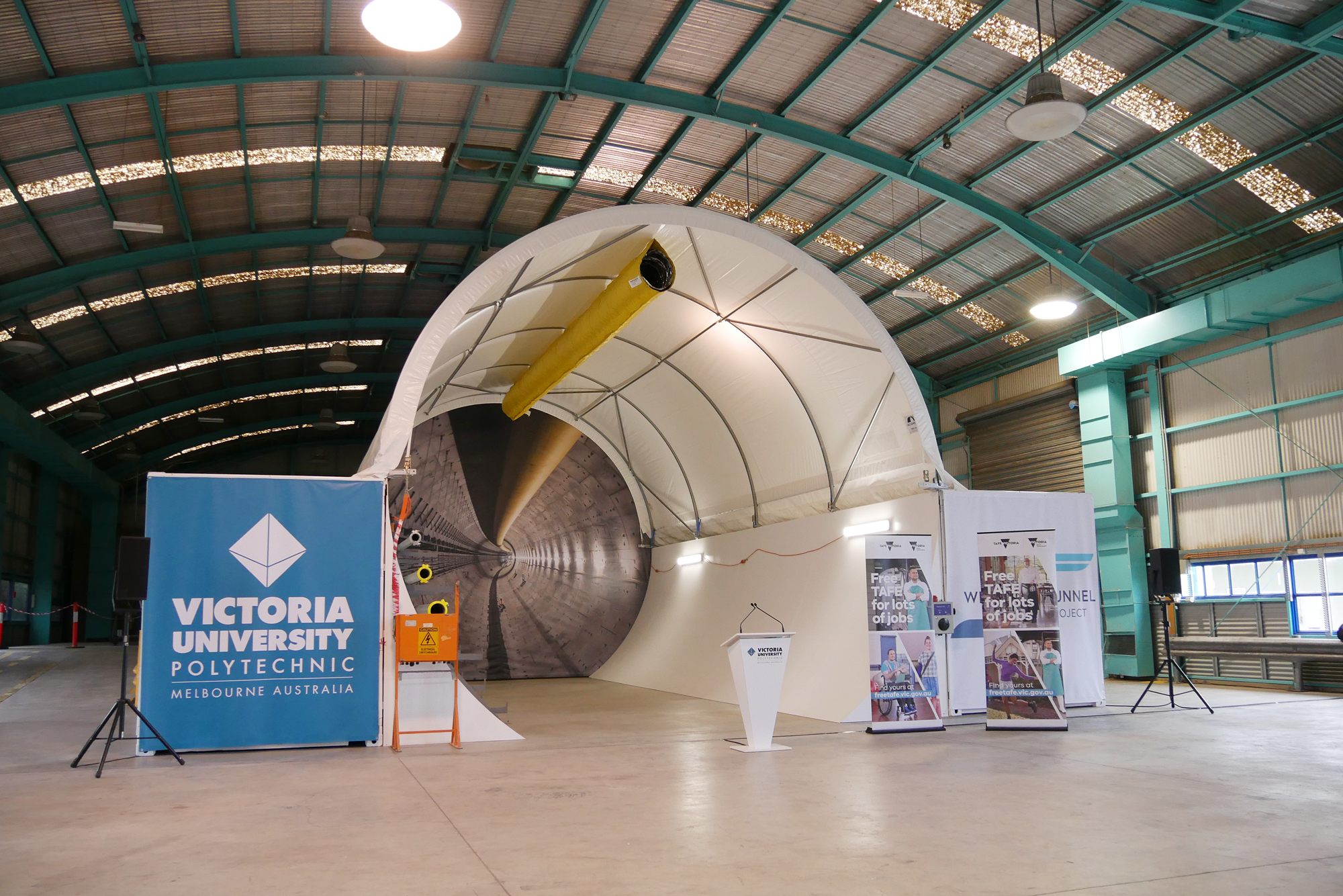 Minister for Training and Skills, the Honourable Gayle Tierney MP visited free TAFE students at the newly reopened Werribee East Campus at VU Polytechnic to check out the recently installed tunnel simulator. Designed to support training for thousands of workers for large scale infrastructure projects, including the West Gate Tunnel project and Western Road Upgrade project, the simulator will provide Civil Construction students with hands-on experience, preparing them for work on these major projects.